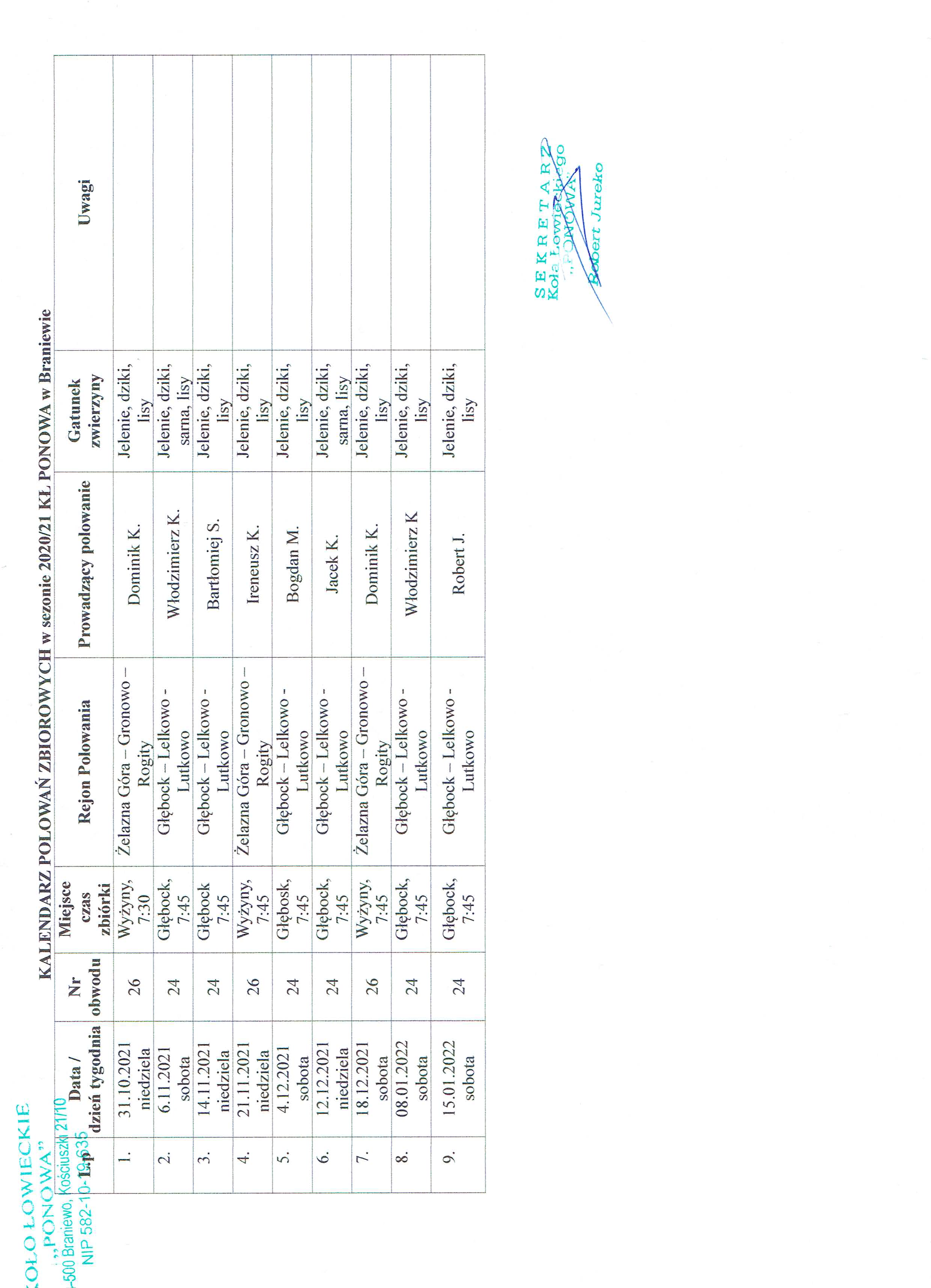 Plan polowań zbiorczych w sezonie łowickim 2021/2022